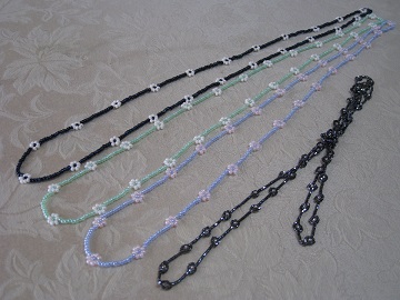 日時:7月26日(日) 13:30〜15:30 講師:中平文子 内容:小さなお花のネックレス *お好きな色をお選びください (色違いで2本作ります。大人用ビーズもあります。) 費用:1200円 対象:幼児〜大人 |